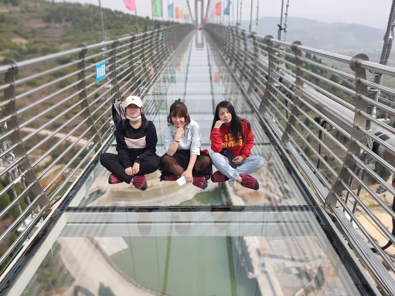 隨后,我們就踏上了登山之路,途中的美景真是讓人心曠神怡、通透,大伙們工作的疲勞都煙消云散,被此時(shí)的美景征服,小伙伴們一起挑戰(zhàn)了玻璃棧道、彩虹滑梯等游園項(xiàng)目。