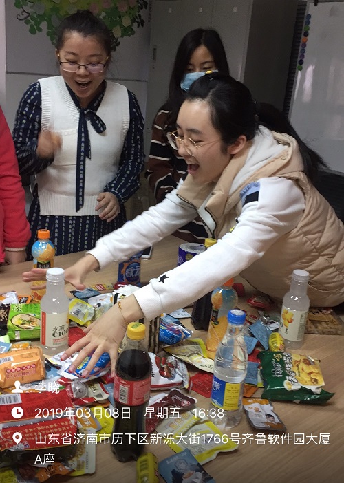 為慶祝3.8婦女節(jié),3月8日下午當(dāng)天在崗女同學(xué)舉行了“3.8趣味女生節(jié)”游戲活動(dòng),現(xiàn)場(chǎng)氣氛熱烈,歡笑聲此起彼伏。