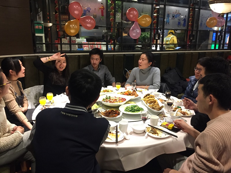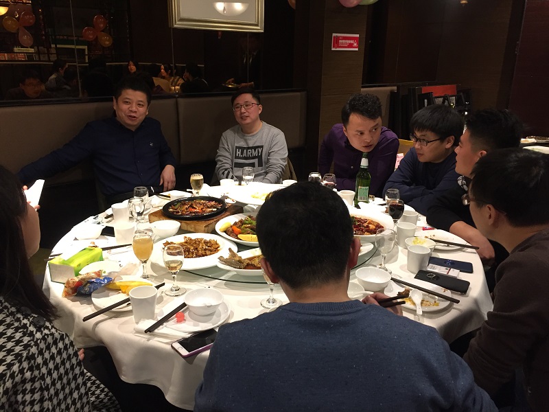 會議結(jié)束后,迎新晚宴小伙伴們?yōu)樾碌囊荒昱e杯同慶,共同祝愿公司明天會更好。