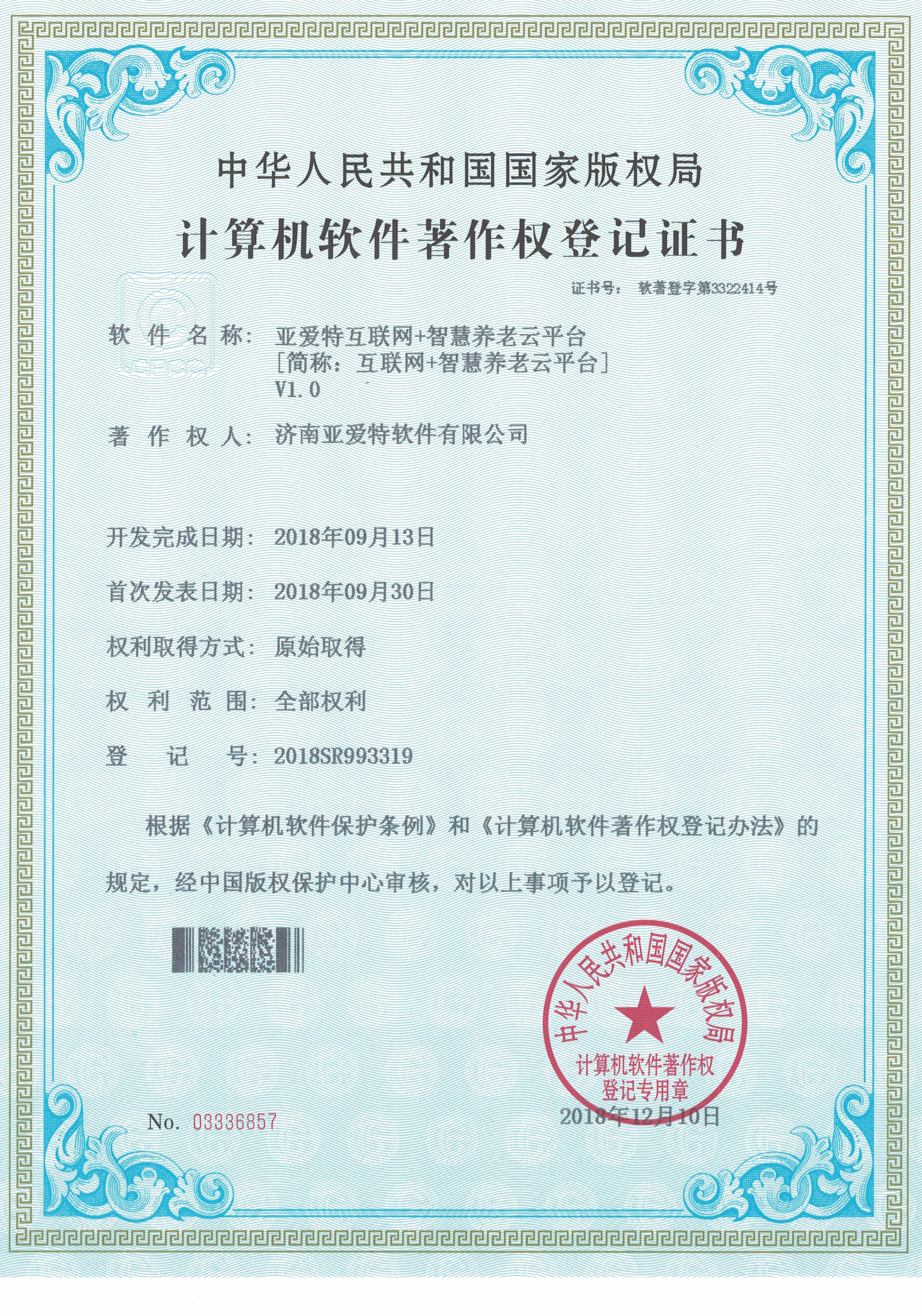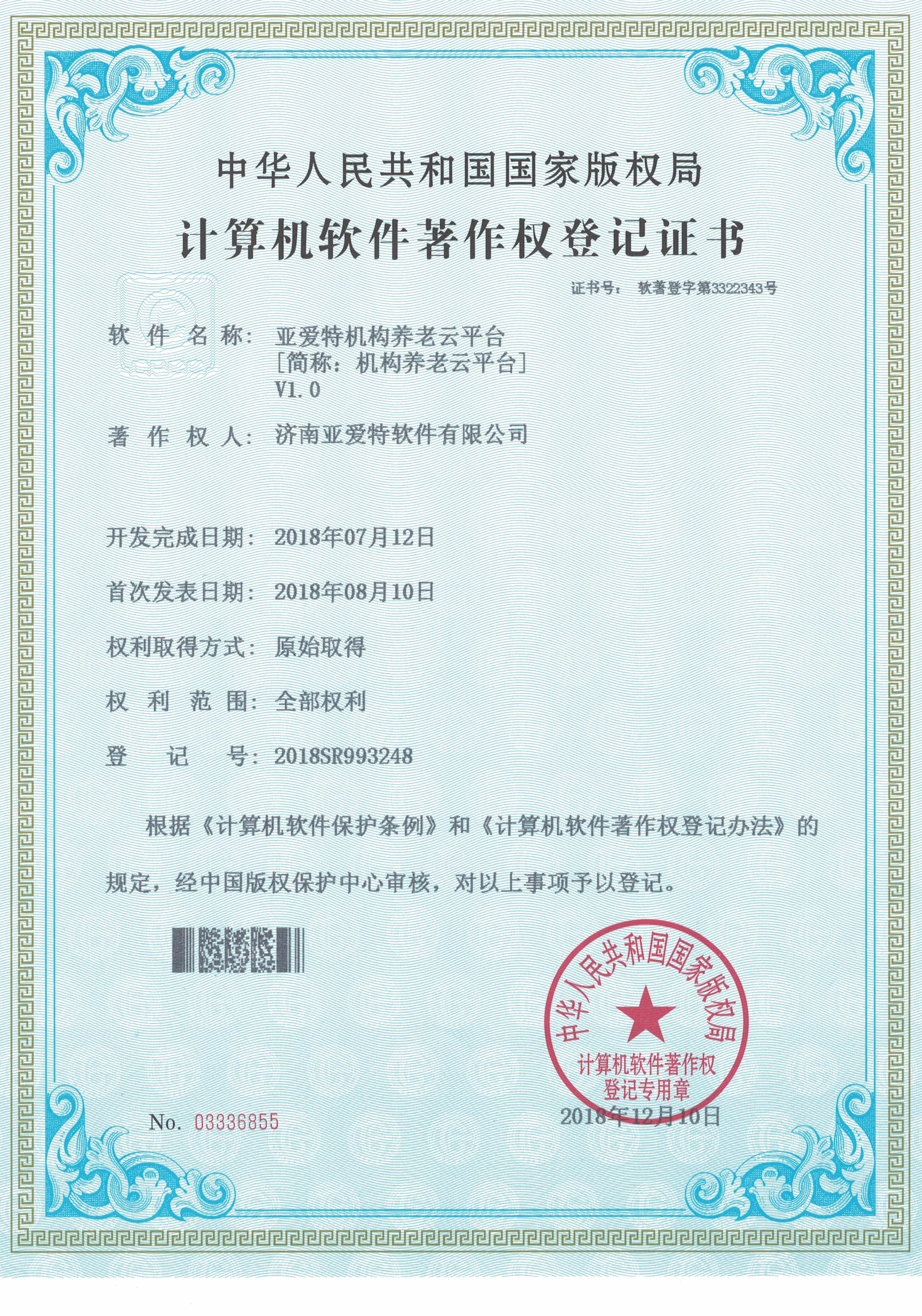 公司智慧養(yǎng)老行業(yè)系列軟件著作權(quán)獲批