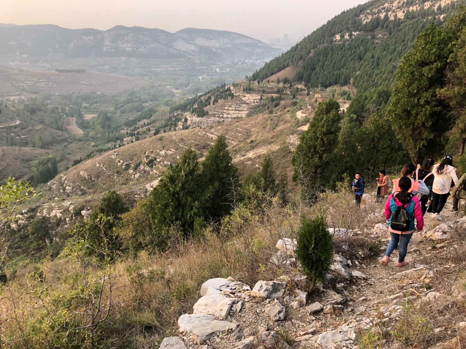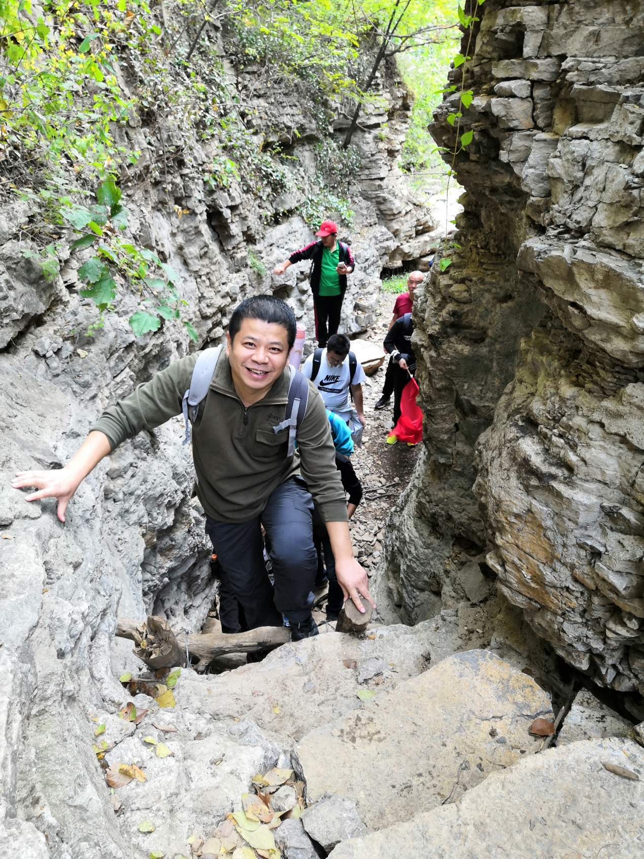 2018年10月13日,趁著秋高氣爽,微風(fēng)不燥,大家從漿水泉水庫(kù)出發(fā),沿水庫(kù)東面山坡上山,途徑貍貓山、大嶺、小嶺、黑峪頂、黑峪、藏龍澗、一線天、觀景臺(tái)、報(bào)恩塔、回龍山,中井莊,完成了一次歷時(shí)9個(gè)小時(shí)長(zhǎng)達(dá)30公里的徒步穿越之旅。