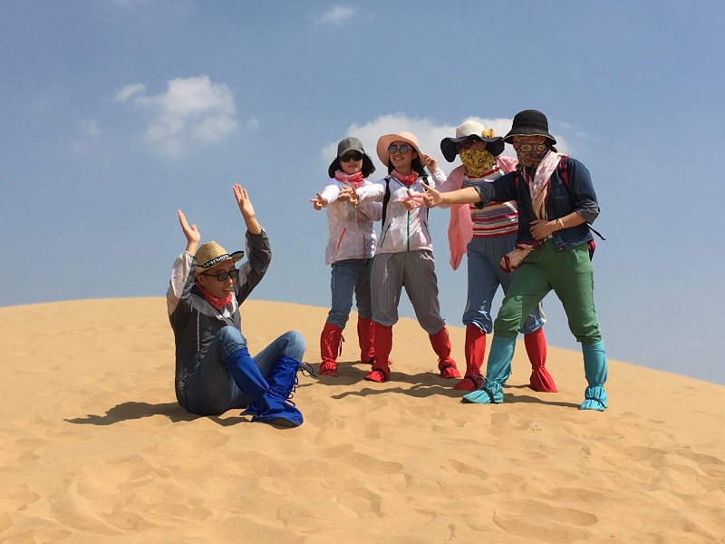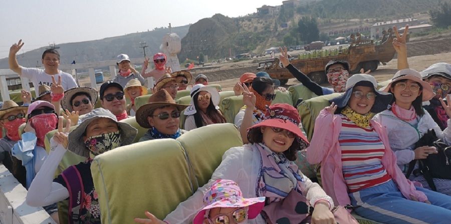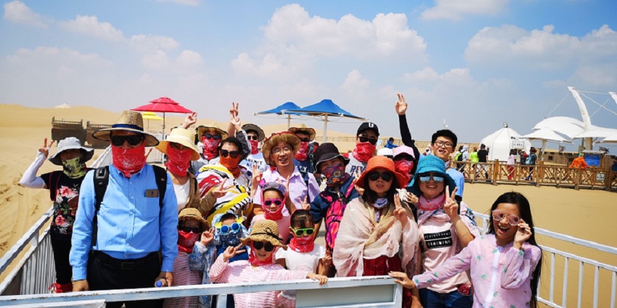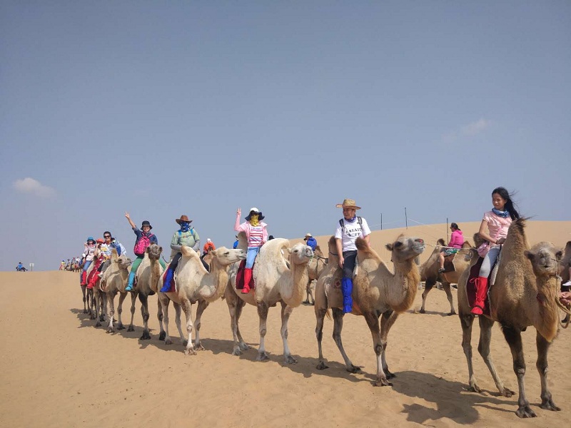 響沙灣號稱是會唱歌的沙子,流傳著張果老的傳說,全體成員防曬防風(fēng)防沙全副武裝,坐上了沙漠沖浪車,進軍響沙灣。騎駱駝、玩沙、騎沙地摩托車、看表演、滑沙,刺激又好玩。